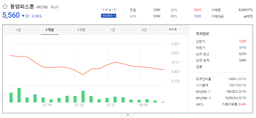 동양피스톤 주가 분석