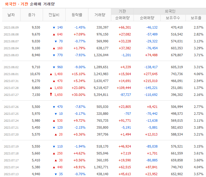 이중에 가장 좋은 것은 외국인과 기관 모두 매수하는 쌍끌이 주식 종목을 투자하는 것입니다. 양대 매수주체들이 같이 매수한다는 것은 투자하기 좋다는 뜻입니다. 주식의 전망을 분석하기 위해서는 먼저 기업체를 분석하고 시장에서의 위치를 알아봐야 합니다. 거기에 외국인과 기관 매수 추세까지 살펴본다면 수익을 낼 확률을 올리는 것이 가능합니다.