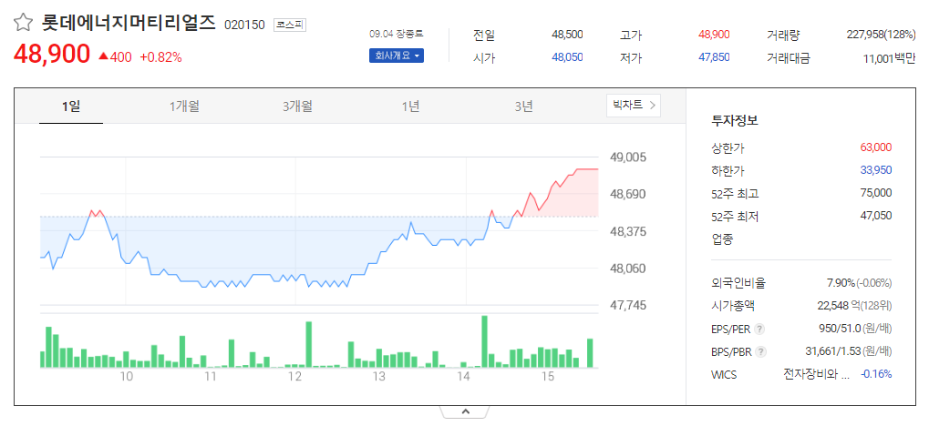롯데에너지머티리얼즈 주가 분석