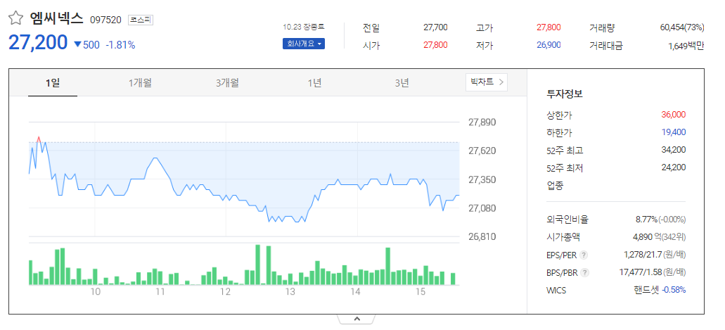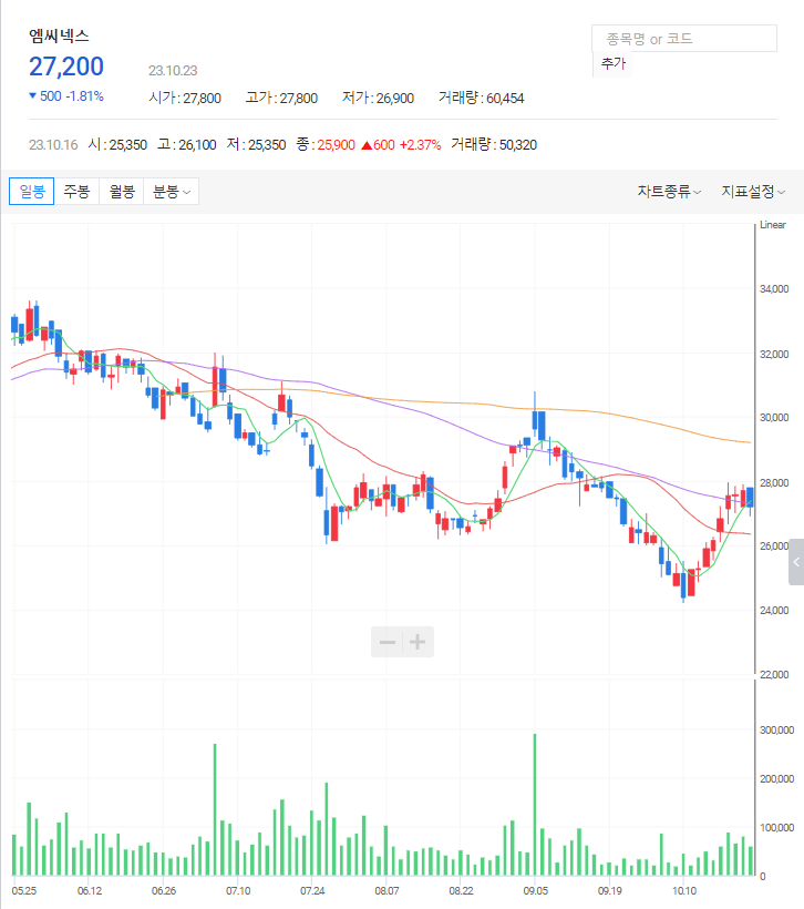 엠씨넥스 주가 분석
