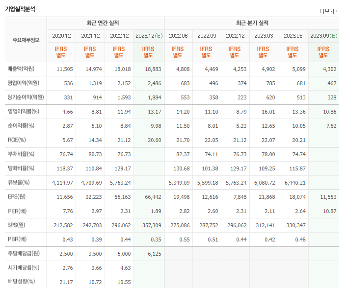 -2023년 6월 전년동기 대비 별도기준 매출액은 7.6% 증가, 영업이익은 14.4% 증가, 당기순이익은 11.9% 증가. 2023년 매출은 제품이 전체매출 중 95%로 높은 비율을 차지하고 있으며, 주요 매출처는 건설사, 철강 유통사, EPC업체, 해외판매법인 등이 있음. 영업소 외 전 사업장이 배출시설에 맞는 환경오염 방지시설 및 법규를 준수하며, 환경 국제 표준 ISO14001 인증을 유지관리 하는 등 녹색경영을 실천중임.