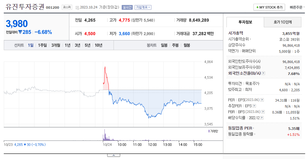 유진투자증권 주가 분석