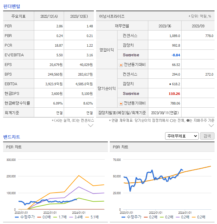 -2023년 6월 전년동기 대비 연결기준 매출액은 2.3% 감소, 영업이익은 153% 증가, 당기순이익은 179.4% 증가. 매출 소폭 감소했으나, 각종 비용이 감소하면서 영업이익과 당기순이익이 큰 폭으로 증가함. 2023년 반기 누적 매출액 기준으로 LPG 부문이 98%를 점유하고 있고, 기타 부문 역시 LPG 사업과 관련한 임대 매출 및 선박 대선매출이 대부분임.