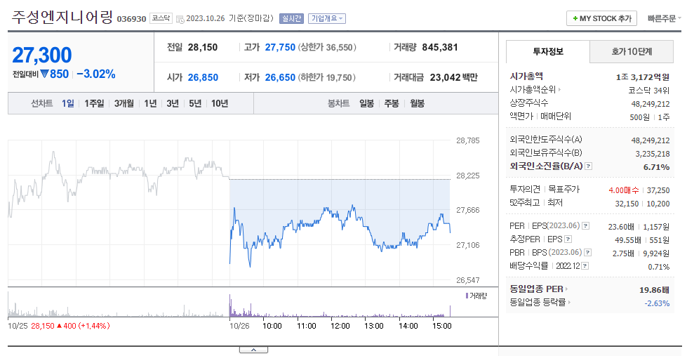 주성엔지니어링 현재 주가는 28,150원이며 전일 대비 원의 모습을 보이고 있습니다. 주성엔지니어링의 주주현황을 살펴보면 황철주(외 8인)이 지분 28.98%를 소유하고 있습니다. 주성엔지니어링는 반도체 및 관련장비 기업으로 장중 기준으로 주가는 28,150원 입니다. 삼성전자의 시가 총액은 1조3196억 원이며 발행 주식수는 6.71주 입니다. 외국인 보유 비중은 1,133,087% 이며 장중 거래량은 48,249,212를 기록했습니다. 매출액은 1,004억 원, 영업이익은 1,239억 원을 달성했습니다. EPS는 551원이며 주성엔지니어링 주식 배당수익률은 13,582% 입니다.