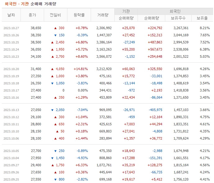 이 때문에 개인 투자자는 기관이나 외국인 세력을 따라 움직이며, 약한 세력에서도 수익을 창출하는 것이 가능합니다. 최근, 외국인보다 기관 투자자를 따르는 흐름이 강해졌으며, 외국인의 매수가 불안정하고 개인의 단기 거래가 기관과 유사한 패턴 때문입니다.