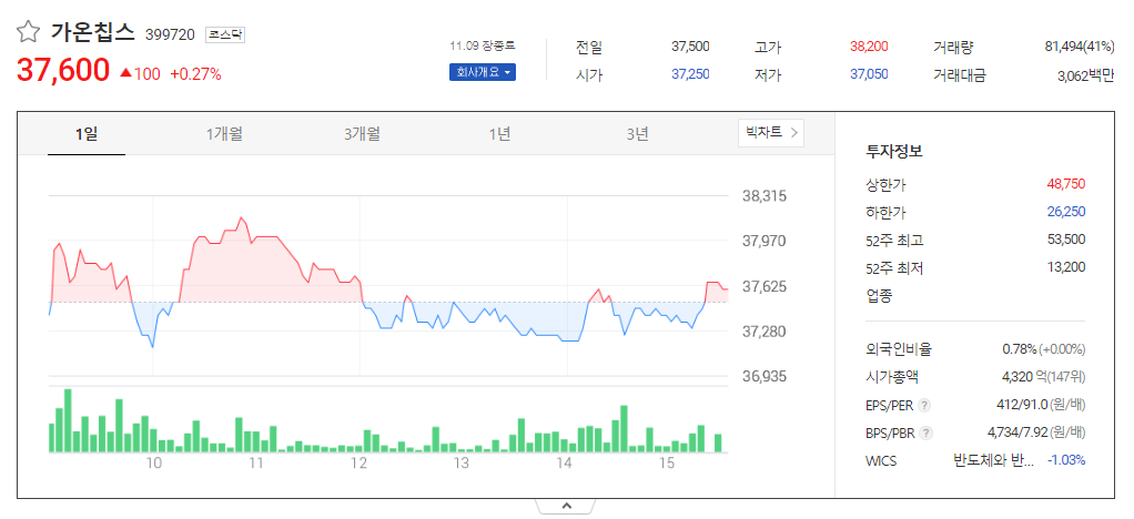 가온칩스 주가 분석