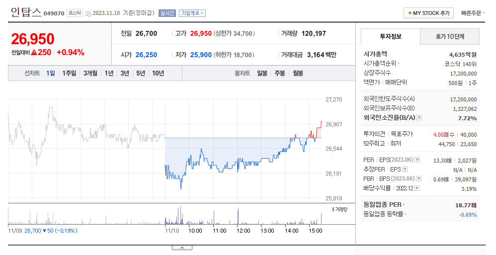 인탑스 주가 분석