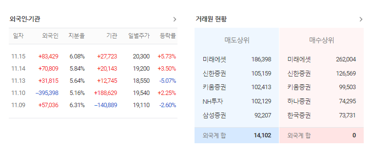가장 이상적인 상황은 외국인과 기관이 동시에 매수하는 종목을 발견해 투자하는 것입니다. 양측 매수주체가 동시에 매수하면, 그 종목이 좋은 것임을 의미합니다. 주식 전망의 분석은 기업체의 상황 조사와 시장에서의 위치 확인이 필수이며, 기관과 외국인의 매수 추세까지 고려하면 수익을 더욱 끌어올릴 수 있습니다.