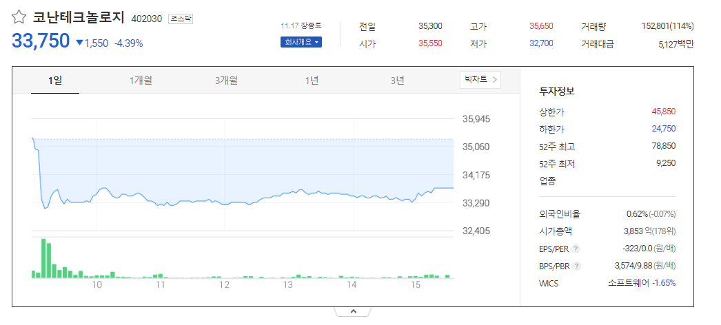 코난테크놀로지 주가 분석