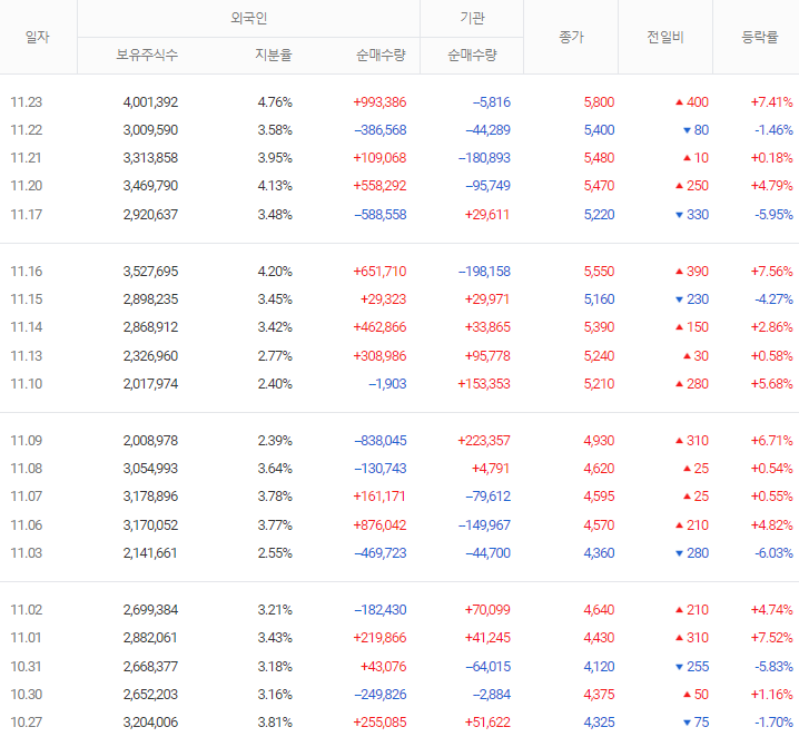 최상의 상황은 외국인과 기관이 함께 매수하는 종목을 찾아 투자하는 것이며, 이는 해당 종목이 품질이 뛰어나다는 의미입니다. 기업체의 현황과 시장에서의 위치, 그리고 기관과 외국인의 매수 추세를 분석하는 것은 주식의 미래를 정확히 파악하는 데 중요하며, 이것은 수익을 끌어올릴 수 있는 중요한 요소입니다.