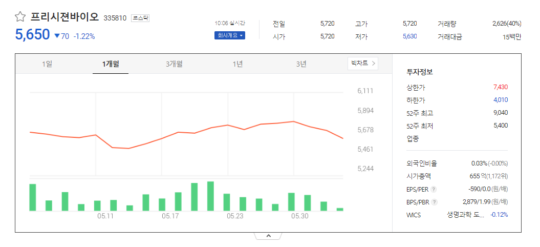 이 글에서는 프리시젼바이오 주가 전망과 목표 주가, 기업 정보에 대해서 설명합니다. 주식을 사기 전에 기업 주가 정보와 재무 상태를 살펴보는 것이 필요합니다. 프리시젼바이오 주식의 주요 현황과 투자 정보를 확인하시고 현재 시장 현황을 살펴보겠습니다.