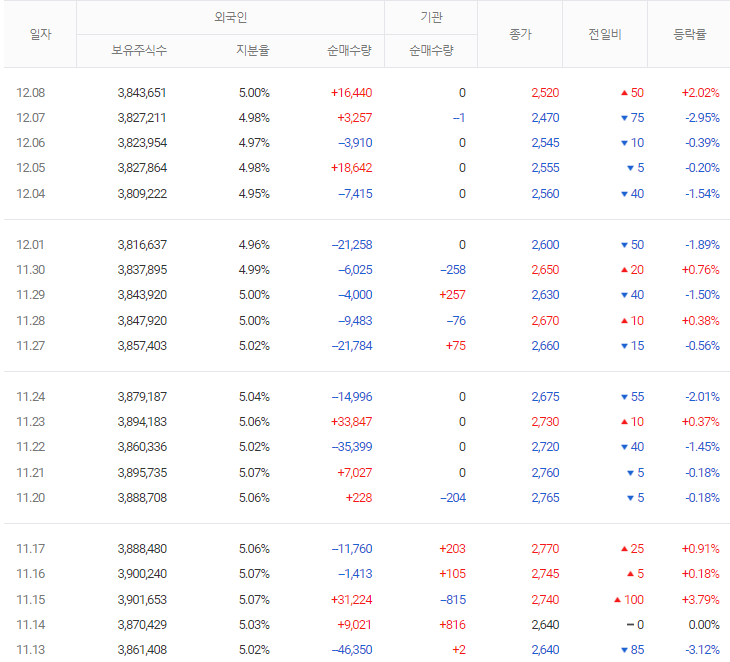 그래서 개인 투자자는 기관이나 외국인 세력을 따르고, 세력이 약해도 어떤 걸 사고 팔아 이익을 얻습니다. 최근에 외국인보다 기관 투자자를 따르는 경향이 더 큰데, 외국인의 매수가 종종 불확실하고 개인의 단기 거래가 기관과 유사하기 때문입니다.
