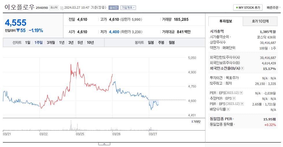 이 글에서는 이오플로우 주가 전망과 목표 주가, 기업 정보에 대해서 설명합니다. 주식 투자의 중심은 미래의 기업 가치를 예측하고 선제적으로 움직이는 것입니다. 투자할 종목을 고르기 전에 현재 기업 상태와 지표를 살펴야 합니다. 이오플로우 주식의 주요 현황과 투자 정보를 확인하시고 주식 투자에 도움을 줄 자료들을 모아두었으니 참고하여 효율적인 투자를 해보세요..