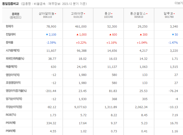 삼아알미늄 가치 분석