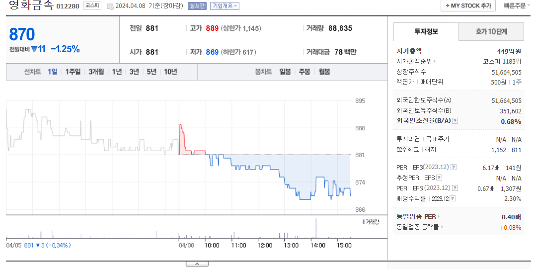 영화금속 주가 분석