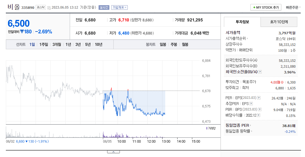 이 글에서는 비올 주가 전망과 목표 주가, 기업 정보에 대해서 설명합니다. 주식을 사기 전에 기업의 주가와 재무 정보에 대해서 살펴보는 것이 필요합니다. 비올 주식의 주요 현황과 투자 정보를 확인하시고 주가 현황을 시장에 맞춰서 분석해보겠습니다.