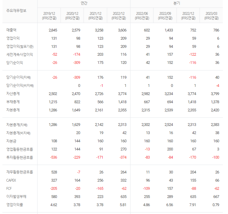 -2022년 12월 전년동기 대비 연결기준 매출액은 10.7% 증가, 영업이익은 69.9% 증가, 당기순이익은 32.2% 감소. 사업 및 경영효율화가 견조한 수준의 매출 성장을 견인했고, 원가 절감 및 생산 구조 효율화로 영업손익이 대폭 개선됨. 고부가제품의 개발, 해외 시장 공략 및 원가 경쟁력 증대 등으로 기존 사업을 성장시키고 의약품, 의료기기, 화장품 사업 등 신규 사업을 추진함.