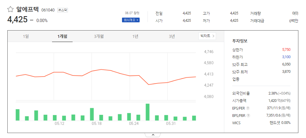 알에프텍 주가 분석