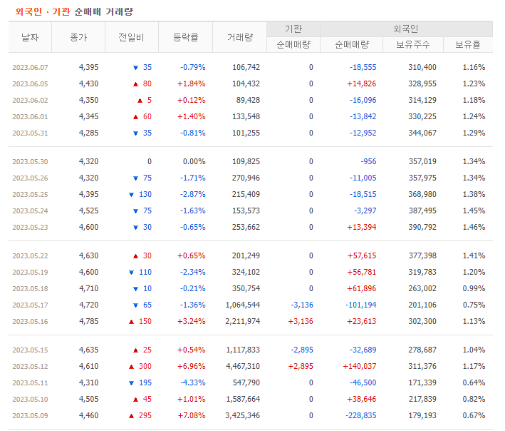 물론 가장 좋은 것은 외국인과 기관이 같이 매수하는 쌍끌이 종목을 공략하는 방법입니다. 외국인과 기관이 같이 매수한다는 것은 그만큼 좋은 종목인 것을 의미합니다. 주식 주가 전망을 알아보려면 기업체 상태를 분석하고 시장에서의 위치를 분석해야 합니다. 그리고 기관이나 외국인 매수 흐름까지 살펴본다면 수익을 낼 확률을 올릴 수 있다고 생각합니다.