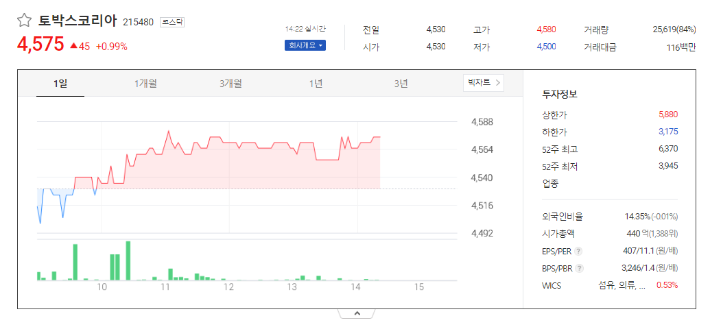 이 글에서는 토박스코리아 주가 전망과 목표 주가, 기업 정보에 대해서 설명합니다. 주식을 보기 전에 정확한 기업 정보와 주가 현황에 대해 분석하는 것이 필요합니다. 토박스코리아 주식의 주요 현황과 투자 정보를 확인하시고 현재 시장 흐름을 알아보겠습니다.