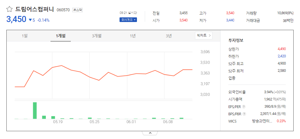 드림어스컴퍼니 주가 전망 현황과 주식에서 기업 순위