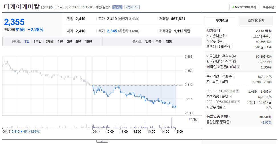 이 글에서는 티케이케미칼 주가 전망과 목표 주가, 기업 정보에 대해서 설명합니다. 주식에 투자하기 전에는 정확한 기업 정보와 주가 현황에 대해 분석하는 것이 필요합니다. 티케이케미칼 주식의 주요 현황과 투자 정보를 확인하시고 주가 현황을 시장에 맞춰서 분석해보겠습니다.