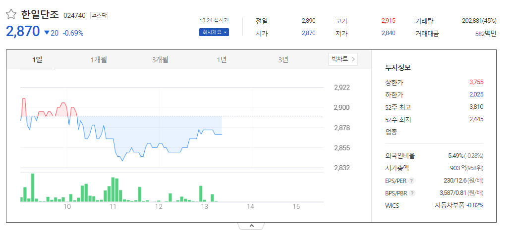 한일단조 주가 분석