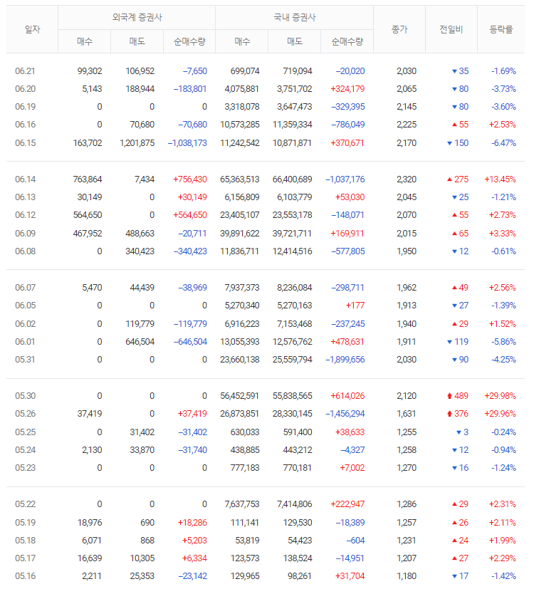 물론 가장 좋은 경우는 기관과 외국인 모두 매수하는 쌍끌이 종목을 찾아서 살펴보는 방법입니다. 외국인과 기관이 같이 매수한다는 것은 그만큼 좋은 종목이라는 뜻입니다. 주식의 흐름을 알아보기 위해서는 먼저 기업체를 분석하고 시장에서의 위치를 알아봐야 합니다. 그리고 기관이나 외국인 매수 흐름까지 살펴본다면 투자 성공 확률을 올릴 수 있다고 생각합니다.
