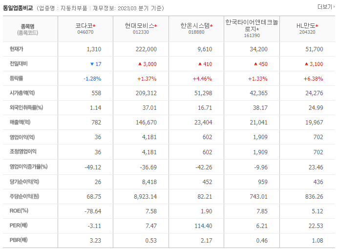 코다코 주가 전망 현황과 주식에서 기업 순위