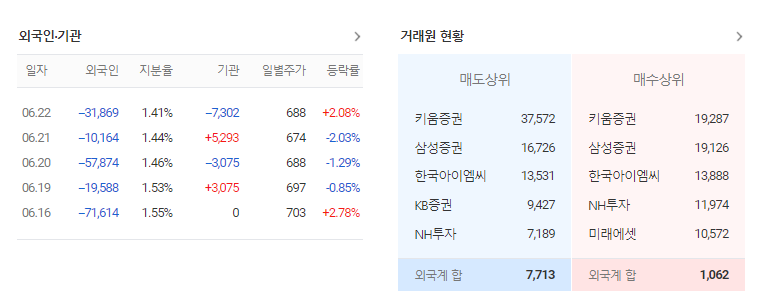 제일 좋은 경우는 외국인과 기관 모두 매수하는 쌍끌이 주식 종목을 공략하는 방법입니다. 큰 세력 두개가 같이 매수한다는 것은 좋은 종목이라는 것을 의미합니다. 주식 주가 전망을 분석하려면 기업체 상태를 분석하고 시장에서 흐름을 분석해야 합니다. 그리고 기관과 외국인 매수 흐름까지 살펴본다면 수익을 낼 확률을 올릴 수 있습니다.