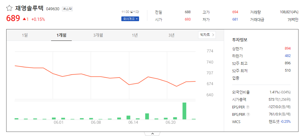 재영솔루텍 주가 분석
