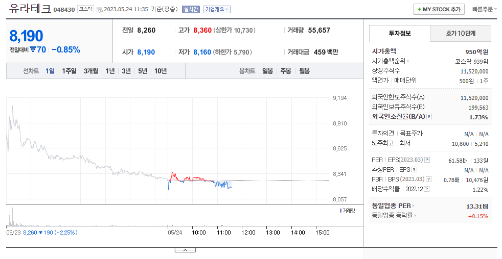 유라테크 주가 전망 분석표와 기업 정보 알아보기