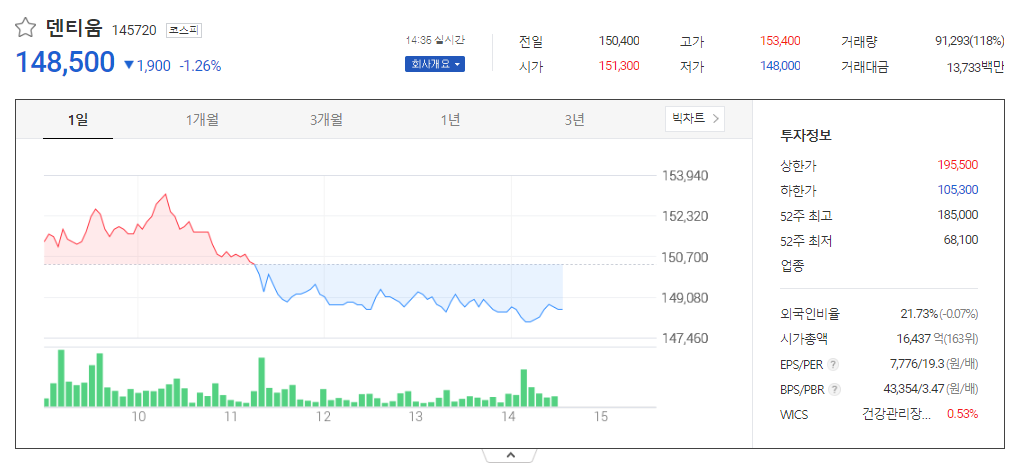 이 글에서는 덴티움 주가 전망과 목표 주가, 기업 정보에 대해서 설명합니다. 주식을 제대로 하기에 앞서 기업 현황고 현재 시장 흐름에 대해서 알아보는 것은 아주 중요합니다. 덴티움 주식의 주요 현황과 투자 정보를 확인하시고 지금 시장 상태를 분석해보겠습니다.