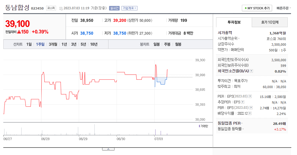 이 글에서는 동남합성 주가 전망과 목표 주가, 기업 정보에 대해서 설명합니다. 주식을 사기 전에 기업 주가와 재무 현황표에 대해서 정리해보는 것은 아주 중요합니다. 동남합성 주식의 주요 현황과 투자 정보를 확인하시고 현재 시장 현황을 살펴보겠습니다.