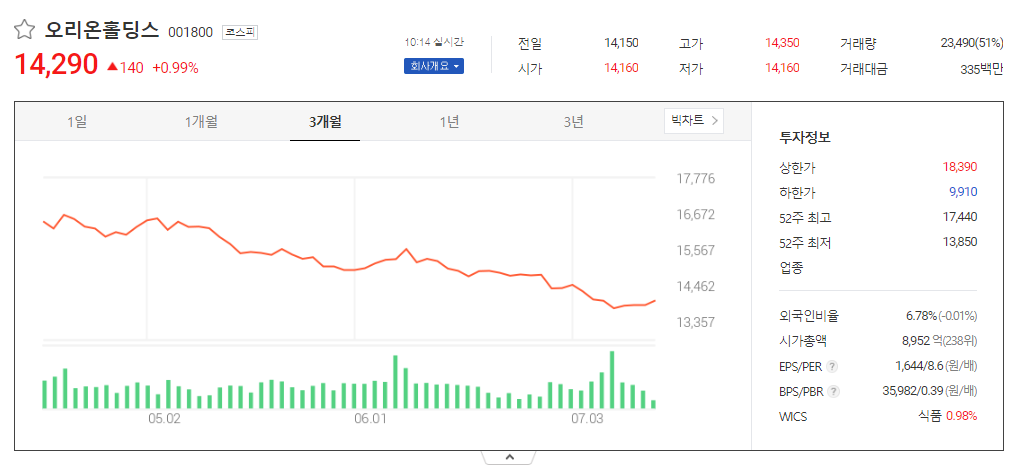 오리온홀딩스 주식 결론