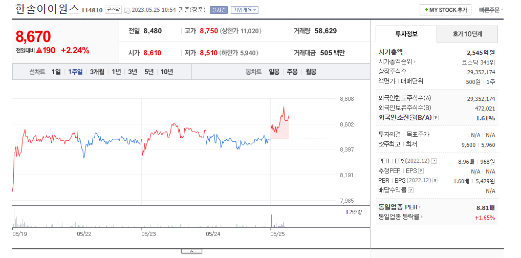 한솔아이원스 주가 전망 확인과 기업 상세 정보