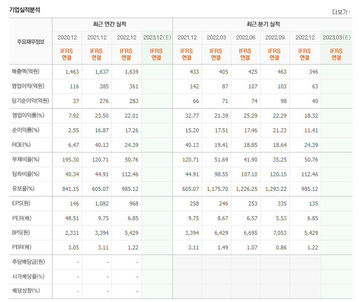 -2022년 12월 전년동기 대비 연결기준 매출액은 0.1% 증가, 영업이익은 6.2% 감소, 당기순이익은 2.5% 증가. 영업이익 전년대비 6.2% 감소한 주요원인은 경영 효율성 증대 및 업무 프로세스 개선을 위한 컨설팅 비용 증가되어 판매관리비가 증가됨. 반도체 및 디스플레이 업계 회복사이클에 맞춰 생산설비 및 라인증설을 추진 중이며, 거래처 다변화와 수주 확대로 호실적 기대.