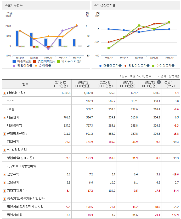-2023년 3월 전년동기 대비 연결기준 매출액은 1.3% 감소, 영업이익은 59% 증가, 당기순이익은 144.7% 증가. 매출액은 소폭 감소하였으나 원가율 개선으로 영업이익과 당기순이익은 크게 증가하였음. Brand Manager체제를 통한 Brand Power 강화에 힘쓰고, Brand Concept 및 Position에 적합한 Media Mix를 통한 효율적 광고집행을 위해 노력하고 있음.
