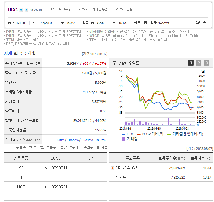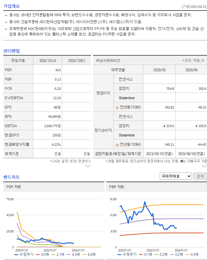HDC 주가 전망 목표 주가 기업 정보