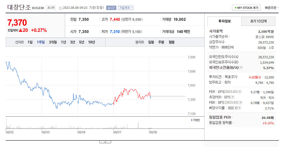 이 글에서는 대창단조 주가 전망과 목표 주가, 기업 정보에 대해서 설명합니다. 주식에 투자하기 전에는 기업 정보를 확인하고 주가 정보에 대해 살펴보는 것은 굉장히 중요합니다. 대창단조 주식의 주요 현황과 투자 정보를 확인하시고 현재 시장 현황을 살펴보겠습니다.